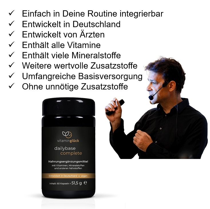 • Alle Vitamine, viele Mineralstoffe und weitere ausgewählte Nährstoffe ohne unnötige Hilfs- und Zusatzstoffe in einer klar aufgebauten Zusammensetzung für die tägliche Anwendung.